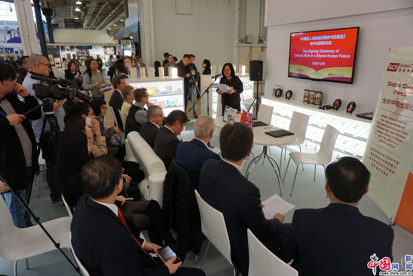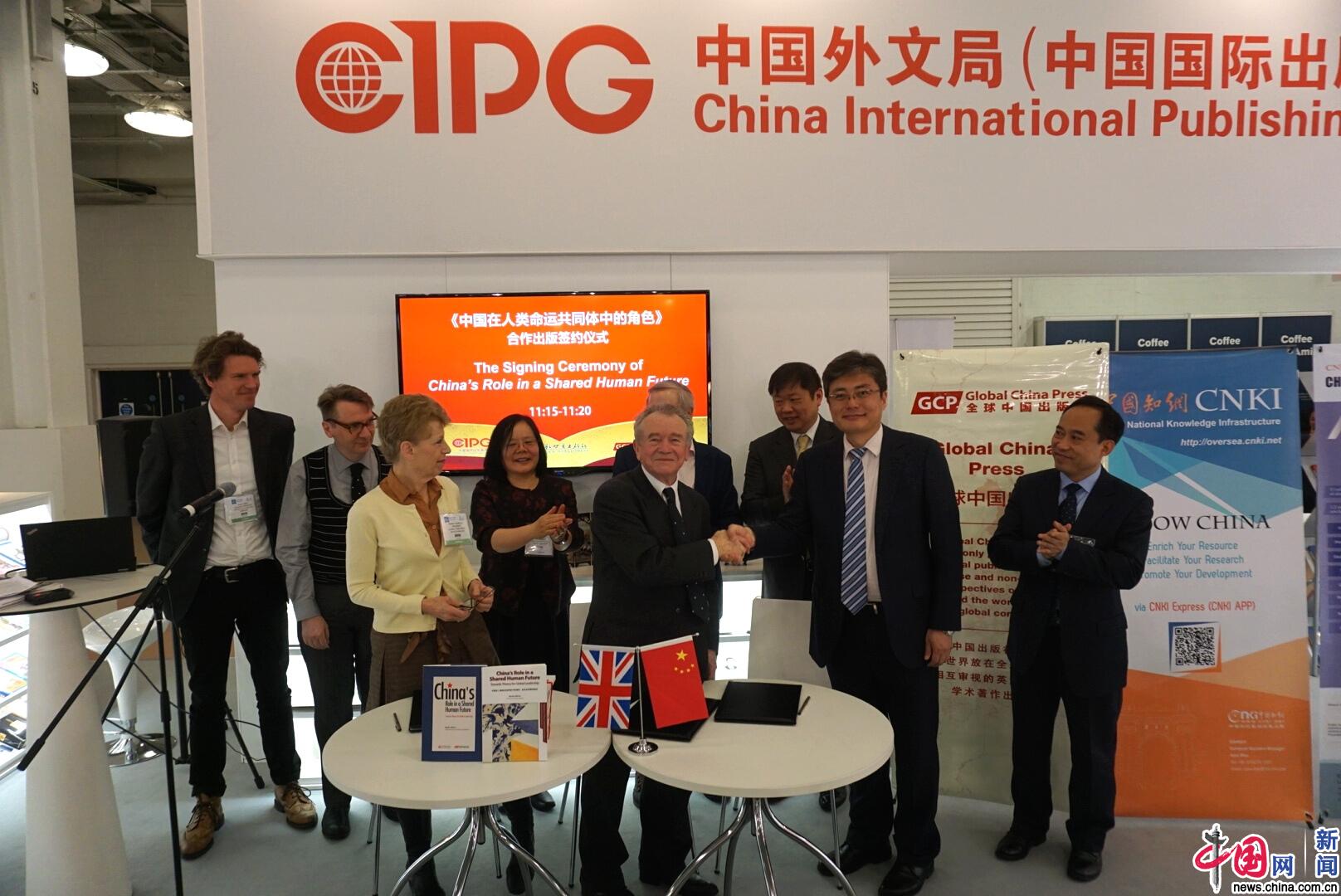 中国网4月11日讯 在10日举行的英国伦敦书展现场,中国国际出版集团、新世界出版社与全球中国出版社联合举办了《中国在人类命运共同体中的角色》一书的合作出版签约仪式。中国驻英大使馆文化处公使衔参赞项晓炜、伦敦经济学院前校长安东尼·吉登斯勋爵、本书作者马丁·阿尔布劳、新世界出版社社长李春凯、全球中国出版社社长英格丽·克兰菲尔德等出席了签约仪式并致辞。签约仪式结束后,作者与到场专家学者就本书内容展开深度研讨,在伦敦书展现场吸引了众多读者和中外媒体。