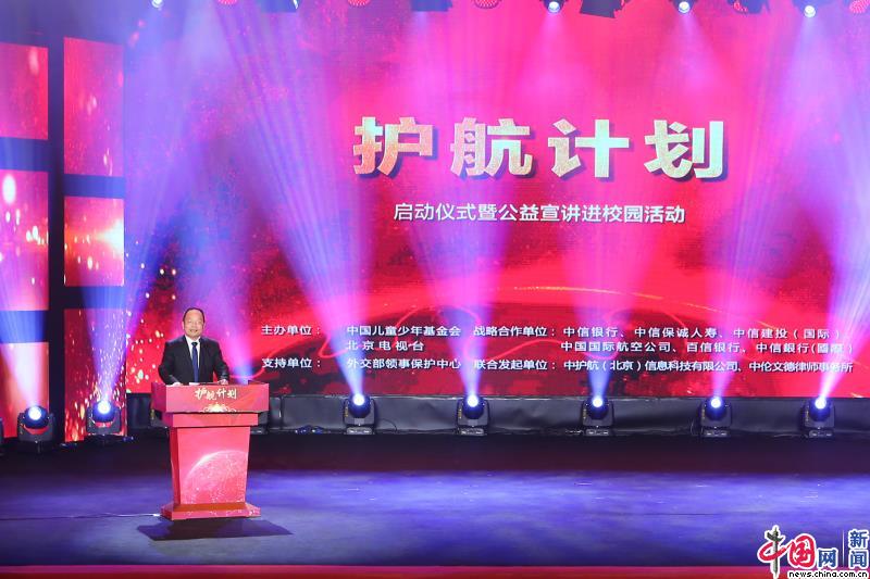 中国网4月14日讯 “坚定文化自信,勿忘华夏之根。永为中华儿女,心向祖国母亲。”2018年4月14日,伴随着同学们的诵读声,由中国儿童少年基金会联合有关单位共同推出的公益项目“护航计划”在京启动。同时,中国儿基会联合北京电视台等单位开展的“护航计划--公益宣讲进校园”系列活动也拉开帷幕。