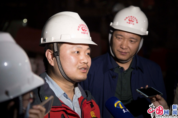 八达岭长城站技术负责人许琪向记者介绍施工情况。 中国网实习记者 廉皓晨 摄