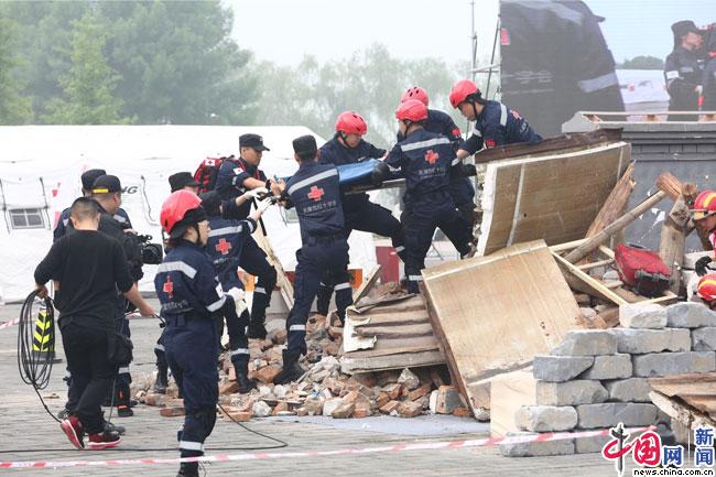 京津冀红十字联合应急培训演练现场,搜救队员正在搜寻生命迹象。中国网 李欢 摄