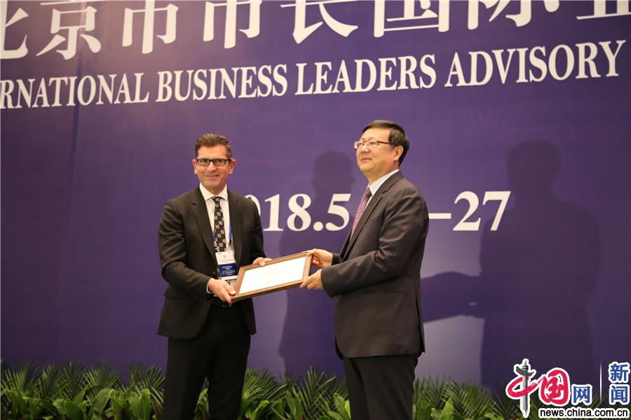 北京市市长陈吉宁(右)向新任顾问颁发聘书。中国网记者 仝选 摄