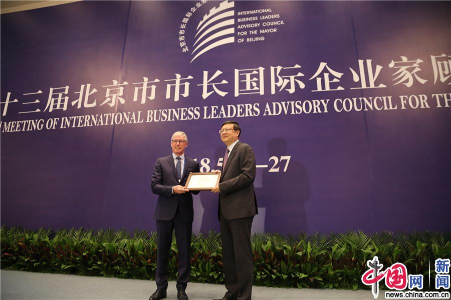 北京市市长陈吉宁(右)向新任顾问颁发聘书。中国网记者 仝选 摄