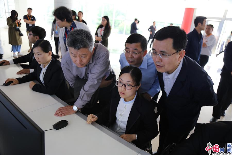 在黑臭水体治理远程操控监控中心,观摩代表与专门值守人员交流。 中国网实习记者 赵丹 摄