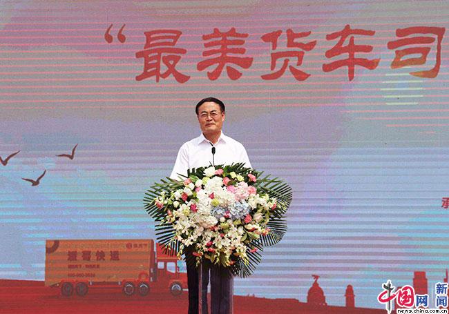 会上,中国物流与采购联合会副会长贺登才宣读《致货车司机的慰问信》。