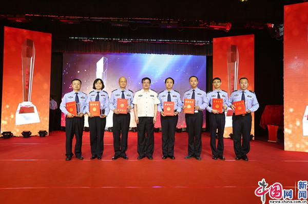 司法部戒毒管理局局长曹学军为优秀矫治人才颁发奖杯。