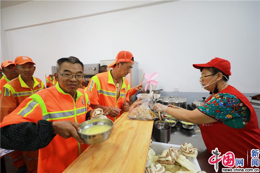 2018年6月28日,辽宁省沈阳市,上完夜班的环卫工人在爱心早餐店领早餐。田卫涛 摄