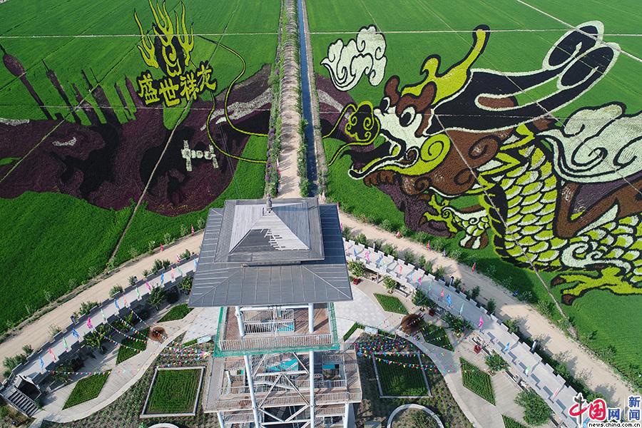 2018年7月4日,沈阳,稻田画《盛世祥龙》占地150亩,20多位工人,历时20多天完成,是园中最大的一幅稻田画。田卫涛 摄