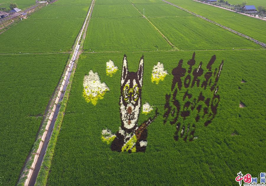 2018年7月4日,沈阳,进入最佳观赏期的《狗年吃鸡》稻田画。