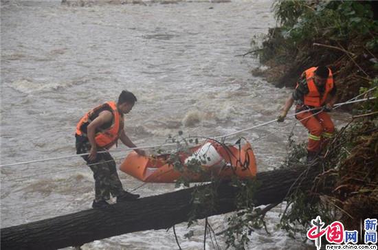 险情就是命令,怀柔消防支队接到报警后,迅速调派汤河口中队赶赴现场,到场后发现,村庄与外界唯一的桥梁被冲毁,整村的村民处于断水、断电、断物资状态,情况万分危急,刻不容缓。在河流上游200米左右,大风将一颗大树刮倒,刚好横在河流中间,成一座独木桥。根据现场指挥部的安排,要求救援官兵在独木桥两侧做支点,用绳索保护,将村民急缺的物资运送过去。接到命令后,救援官兵迅速行动,由一名经验丰富的官兵先行过独木桥,携带绳索在对岸树上做好支点,随后,其余救援人员使用多功能担架,将村民急缺的食品、药品、照明工具等物资放在担架上固定好,由两名救援人员从独木桥上护送过去。独木桥仅仅只有40公分宽左右,仅仅只能勉强容纳一人走过去,救援人员需要两人协同配合携带沉重的物资一点点挪到对岸,桥下就是滚滚的洪水,稍有不慎就可能失足摔落,被凶猛的洪水冲走。一趟、两趟、三趟,一次又一次,最终,经过一天的运送,救援官兵成功将村民急缺的物资送到他们手中。