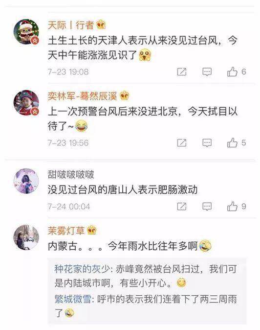 资料图:部分网友在微博留言中表示“没见过台风”,对台风的到来表示非常激动。