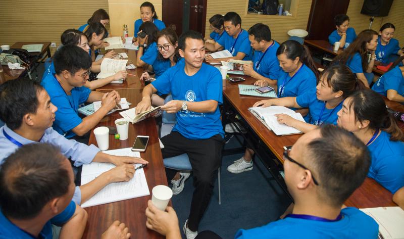 8月23日下午,分组讨论,100名教师分成6组,在说到“什么课程给自己印象最深刻”时,浦合丽不假思索脱口而出“儿童权利与保护课”。她说的是《保护儿童权利,促进青少年积极成长》课程。