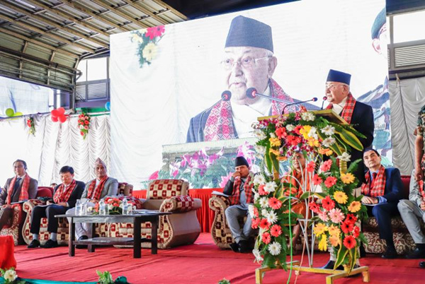 尼泊尔总理奥利在交付仪式上发表致辞。