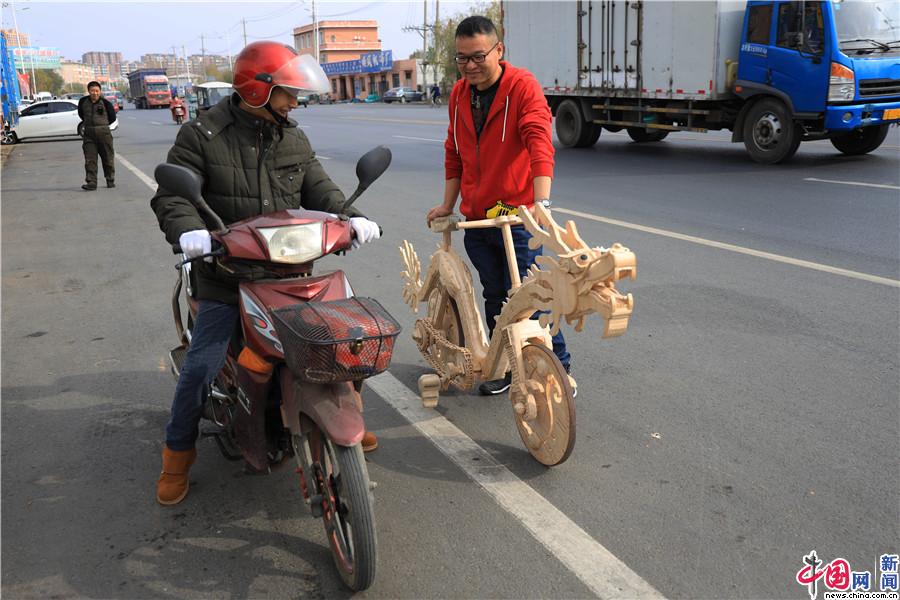 辽宁小伙2.2万根雪糕棍创作一台自行车 骑在路上特拉风