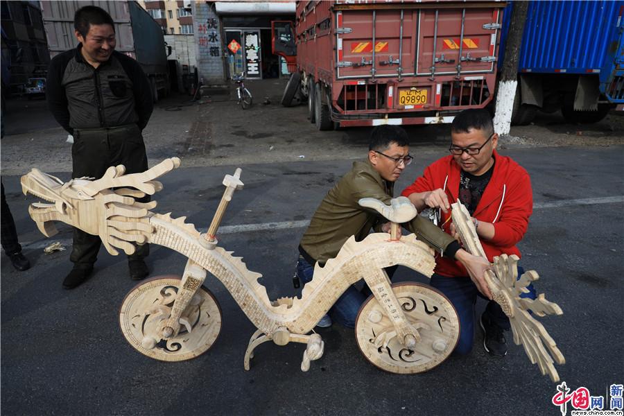 辽宁小伙2.2万根雪糕棍创作一台自行车 骑在路上特拉风