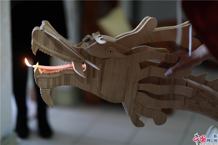 2018年10月25日,辽宁省开原市,龙头有机关可以喷火。