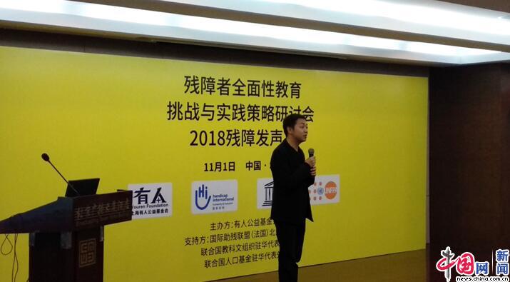 中国网11月1日讯(记者赵超)11月1日,“残障人士全面性教育挑战与实践策略”研讨会在北京召开。本次研讨会由上海有人公益基金会主办,联合国教科文组织驻华代表处、国际助残联盟(法国)北京代表处、联合国人口基金驻华代表处等代表参加。