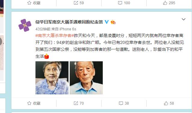 侵华日军南京大屠杀遇难同胞纪念馆官方微博截图
