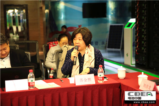 图为天津力神电池股份有限公司副总工程师苏金然主持课题讨论