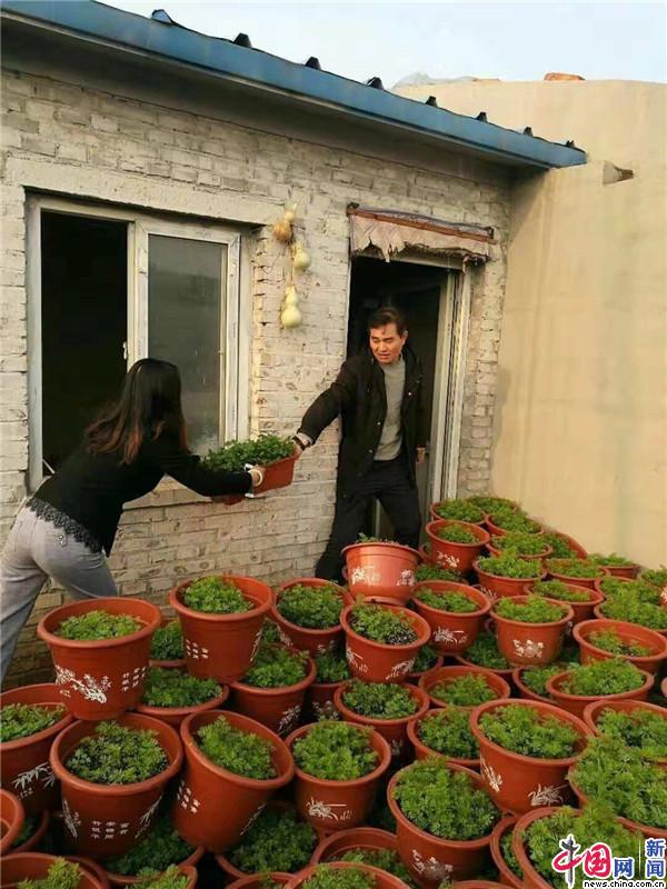 崔全胜摆放从农户家收回的盆栽蔬菜。受访者供图