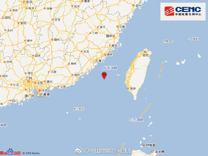 台湾海峡发生3.5级地震 震源深度12千米