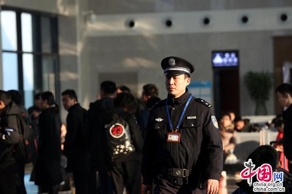 图为徐州铁路公安处民警在永城北站候车室巡查
