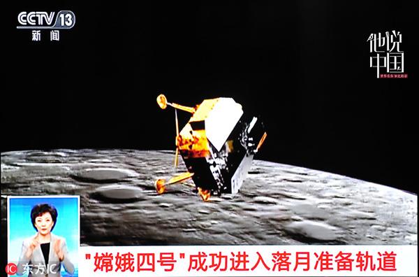 截屏图:2018年12月30日8时55分,嫦娥四号探测器在环月轨道成功实施变轨控制,顺利进入预定的月球背面着陆准备轨道。(东方IC)