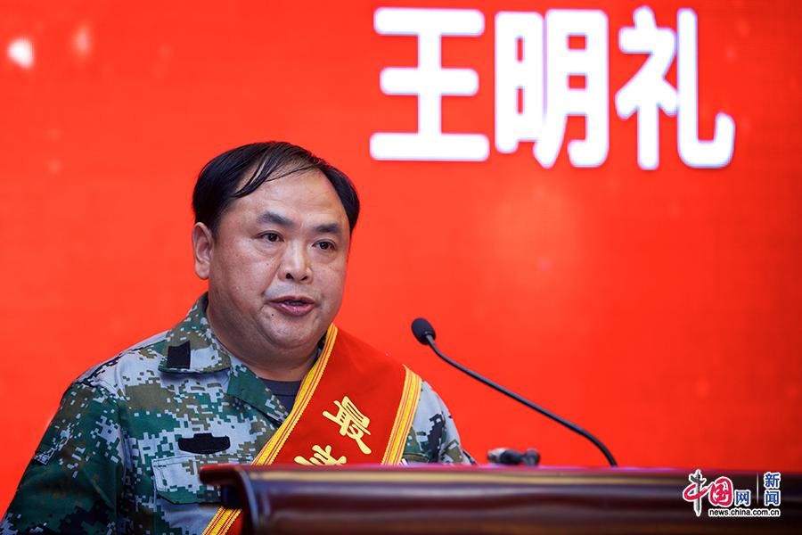 2019年1月4日,北京,“最美退役军人”先进事迹报告会在人民大会堂举行。图为“最美退役军人”、贵州省思南县东升森林种养家庭农场场长王明礼作报告。中国网记者 吴闻达 摄