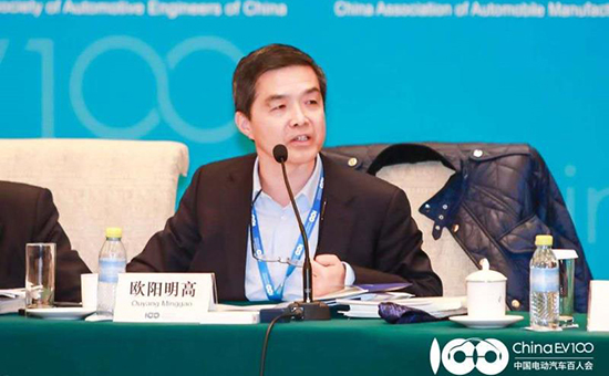 图为中国科学院院士、中国电动汽车百人会执行副理事长欧阳明高
