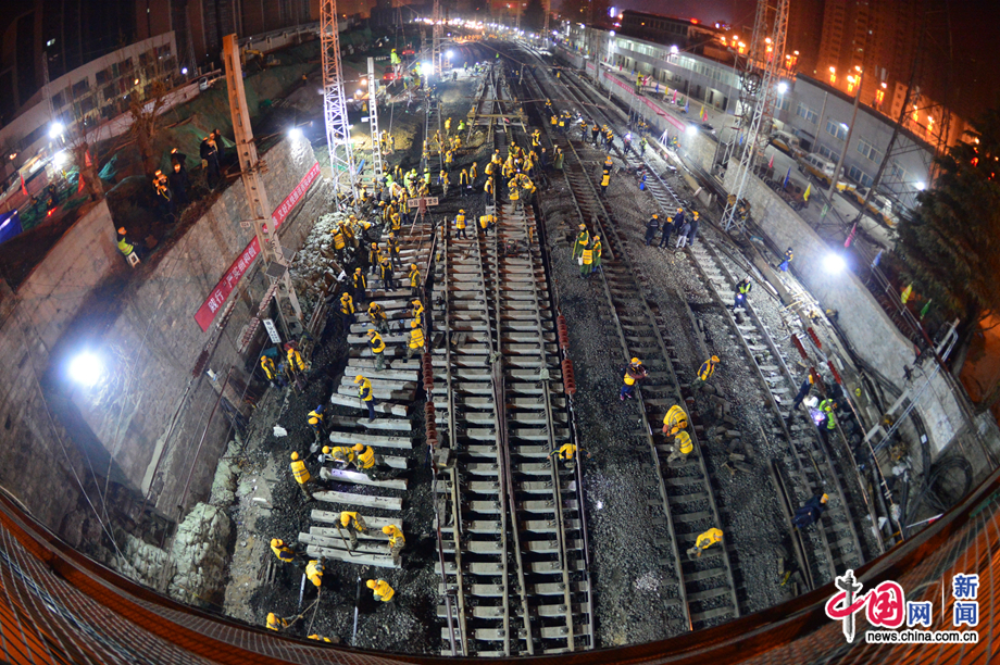 1月15日凌晨,施工人员在西安火车站东咽喉区进行联锁设备换装作业。中国网发 唐振江/摄