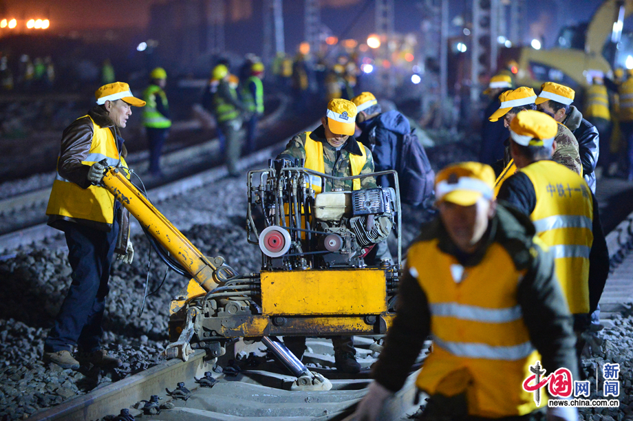 1月15日凌晨,施工人员在西安火车站东咽喉区进行联锁设备换装作业。中国网发 唐振江/摄