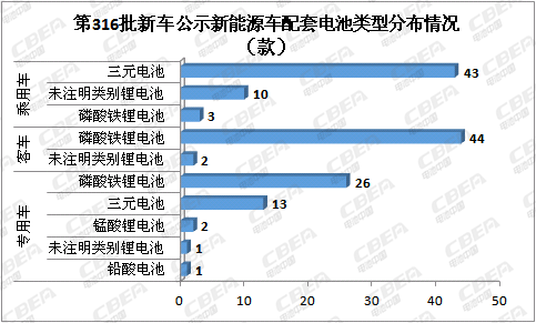 2019年1月18日,国家工信部在其官方网站公示了申报第316批《道路机动车辆生产企业及产品公告》(以下简称《新车公示》)新产品,公示期7天,截止到1月24日。本批新车公示中申报的新能源汽车产品共145款,其中,新能源乘用车56款,新能源客车46款,新能源专用车43款。