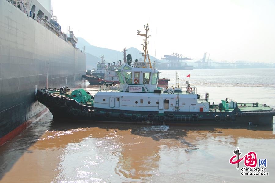 轮司拖轮全力做好LNG船舶靠泊的助泊作业。浙江省海港集团、宁波舟山港集团供图