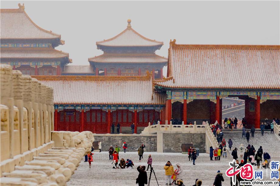 故宫迎“情人节大雪” 游人扎堆赏雪景