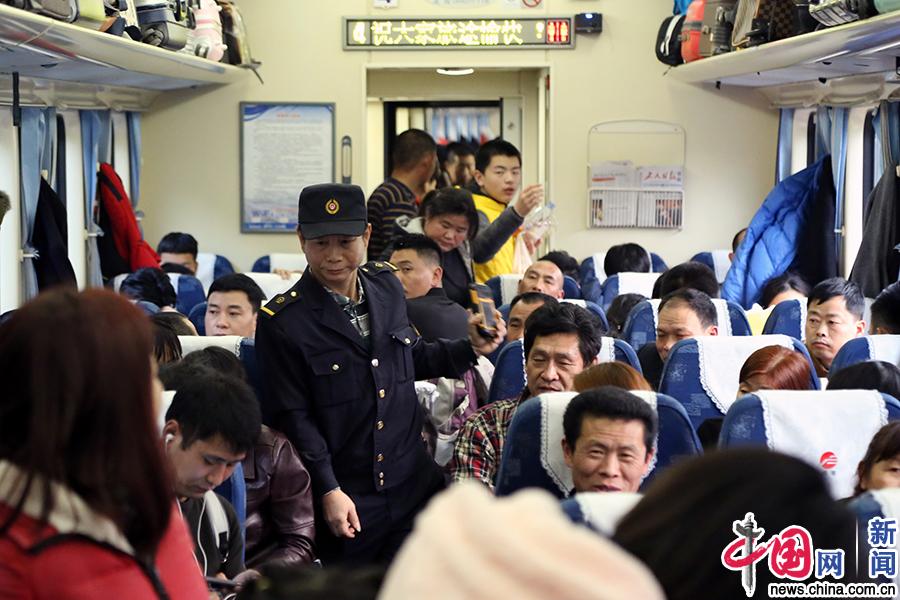 挤着“人墙”对车厢内服务设施进行巡视检查。 中国网发 王玉星 摄