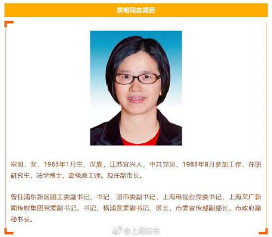 宗明任上海市副市长