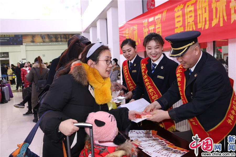 元宵节临近,锡林浩特车务段锡林浩特站开展“猜灯谜、闹元宵”活动,车站工作人员精心准备了灯谜与旅客交流互动,并为猜对灯谜的旅客准备了精美的奖品,旅客踊跃参与,现场气氛活跃,客运服务人员将热情腾腾的汤圆送给候车室的旅客,为旅客提前送上元宵节的祝福,候车室里充满了浓浓的节日氛围。(中国网发 冯惠霞/摄)