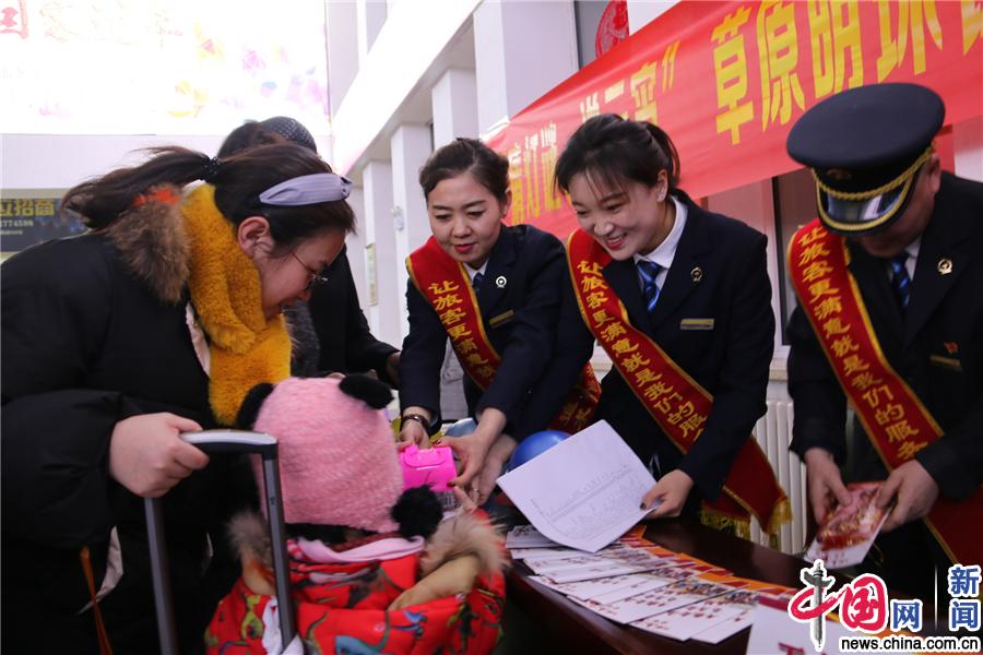 元宵节临近,锡林浩特车务段锡林浩特站开展“猜灯谜、闹元宵”活动,车站工作人员精心准备了灯谜与旅客交流互动,并为猜对灯谜的旅客准备了精美的奖品,旅客踊跃参与,现场气氛活跃,客运服务人员将热情腾腾的汤圆送给候车室的旅客,为旅客提前送上元宵节的祝福,候车室里充满了浓浓的节日氛围。(中国网发 冯惠霞/摄)