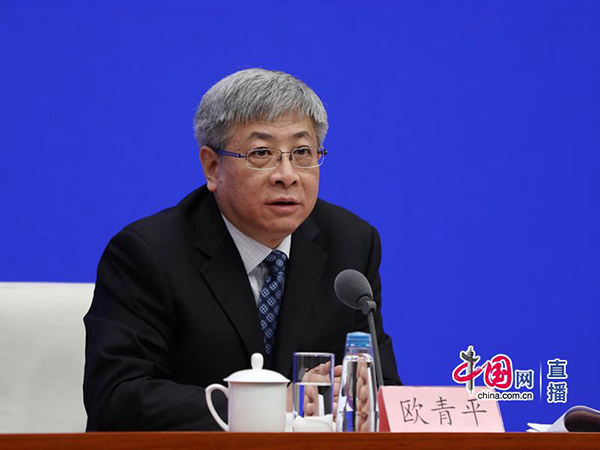 2月20日,国新办举行吹风会,国务院扶贫开发领导小组办公室副主任欧青平介绍情况。中国网 宗超 摄