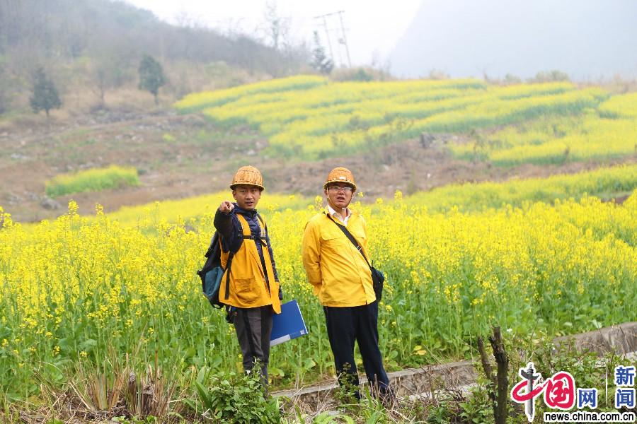 油菜花旁的“黄马褂”,为铁路南昆线保驾护航