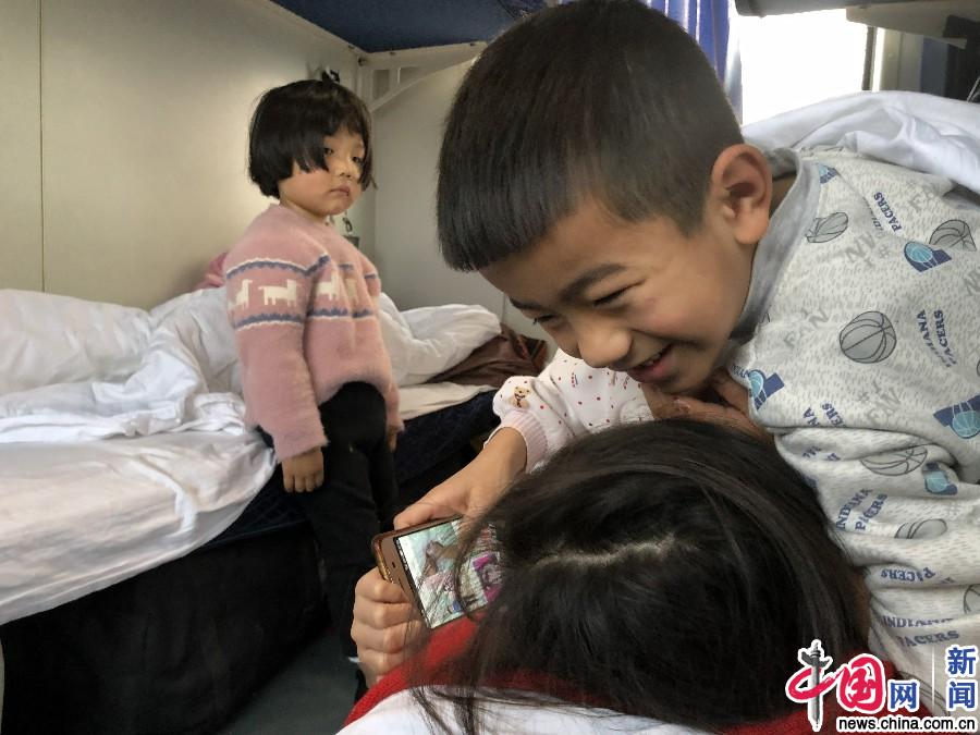 说好了手机轮流玩半小时,现在轮到我了。中国网发 丁波/摄