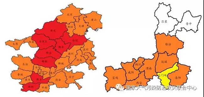 “2+26”城市和汾渭平原预警发布情况。图片来源:生态环境部