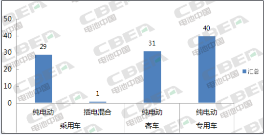 从动力类型来看,本批新车公示中纯电动车型有100款;插电式混合动力车型有1款;此次无燃料电池车申报。