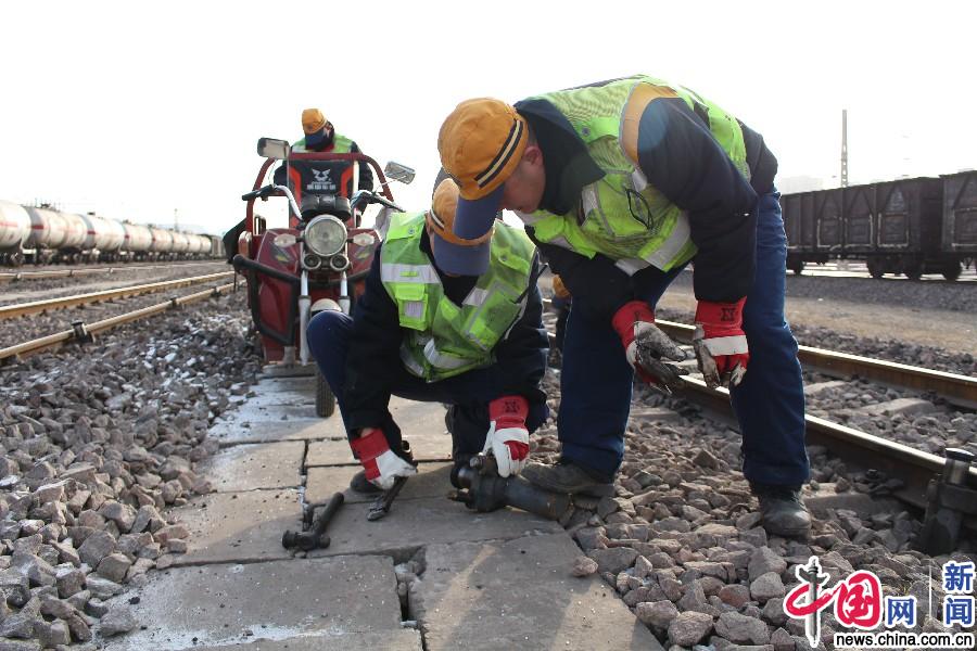 减速顶维修人员正在对损坏的减速顶进行维修。