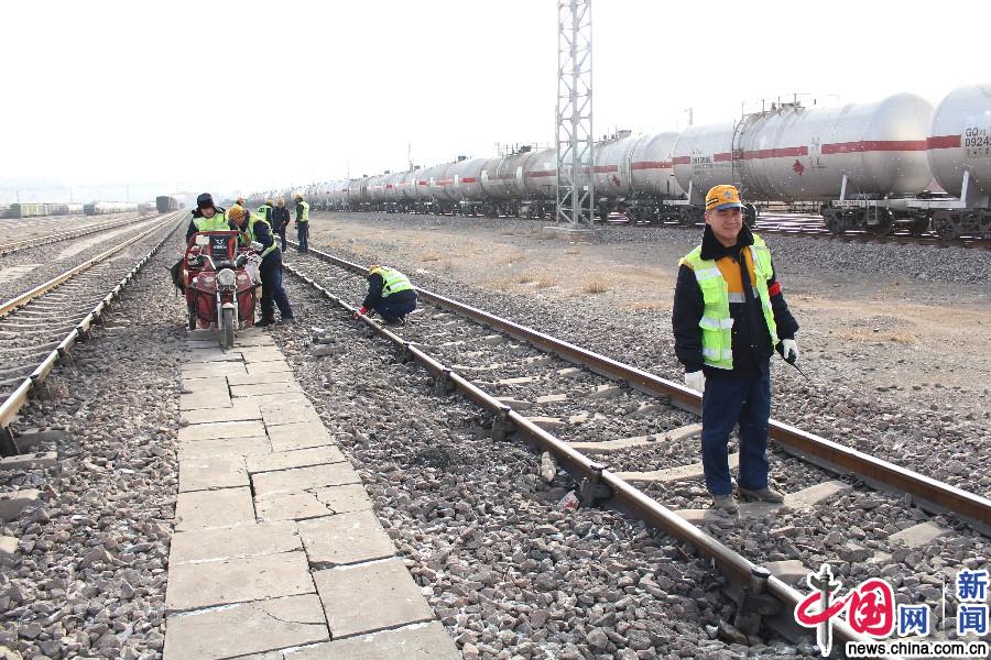 减速顶维修人员正在对厂区内的减速定进行维修更换。