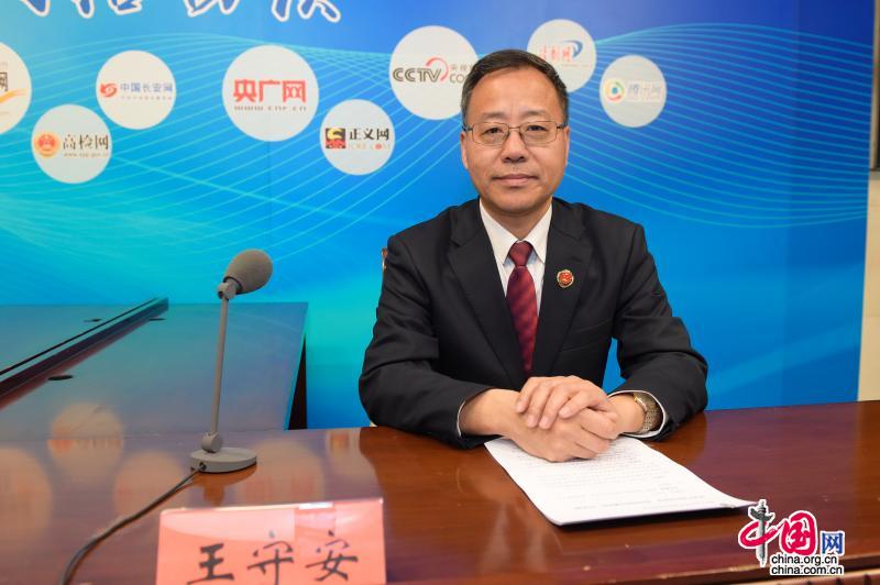 最高人民检察院检察委员会委员、第五检察厅厅长王守安做客“新时代四大检察”网络访谈。图片来源:最高检