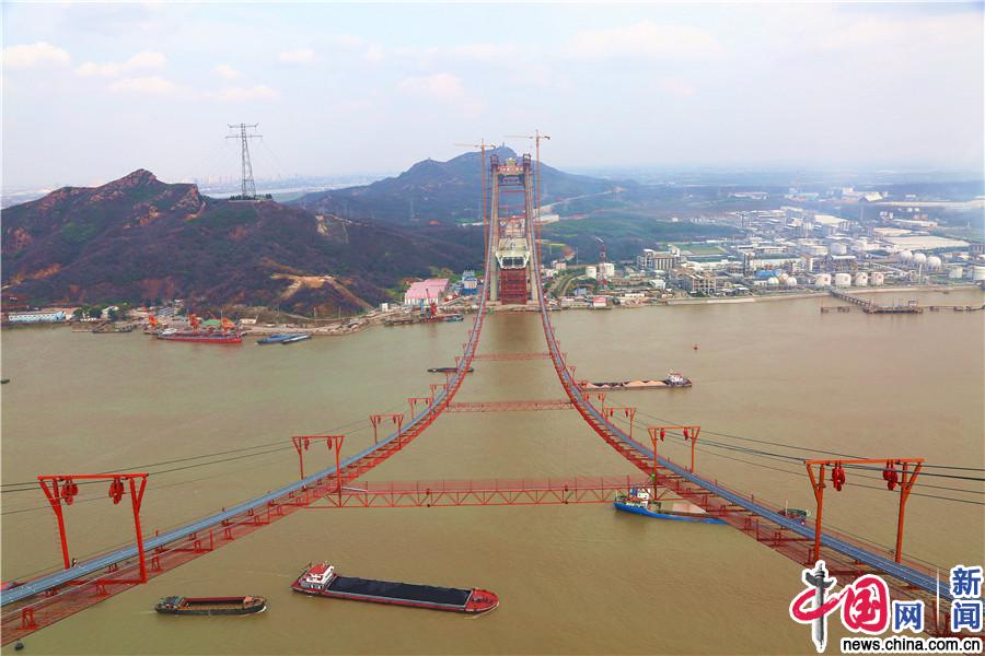 建设中的五峰山长江大桥。(中国网发 常美兰/摄)