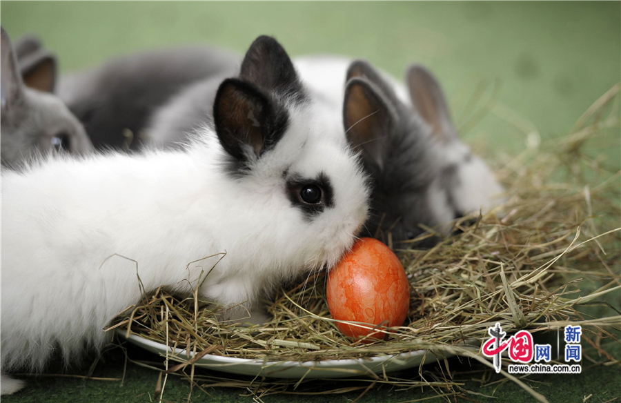 动物也过复活节 玩转彩蛋紧抱不"松手"