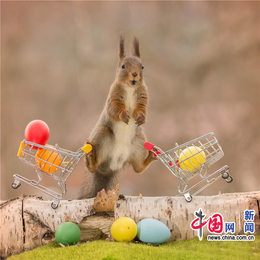 动物也过复活节 玩转彩蛋紧抱不"松手"