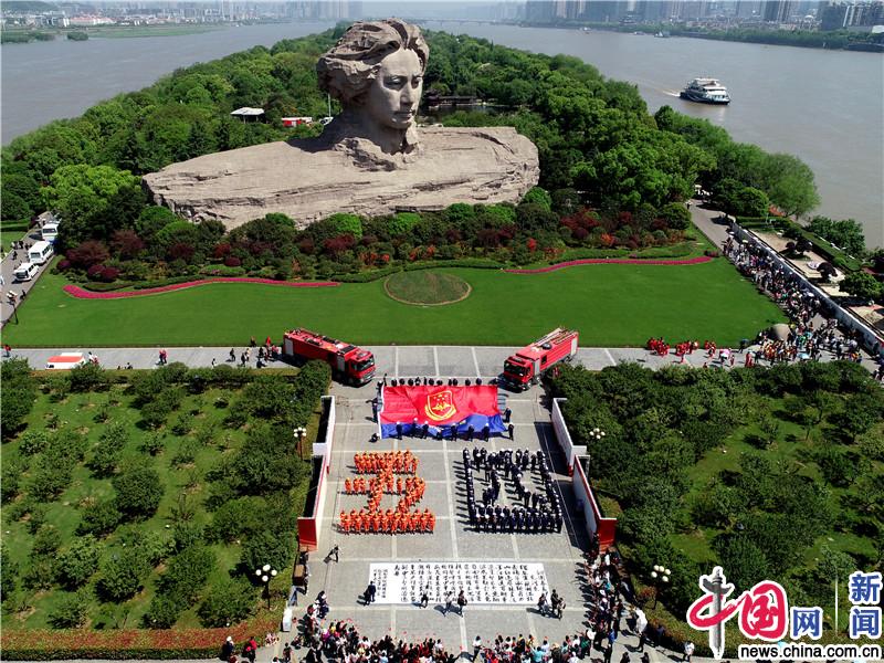 中国网4月30日讯 (记者 彭瑶 通讯员 方锐 )五四前夕,湖南消防总队近300名青年指战员齐聚长沙橘子洲毛泽东青年艺术雕像前,齐声朗诵伟人诗词《沁园春·长沙》,结合传播消防知识、创作巨幅书法、表演消防仪仗舞等多种形式,纪念五四运动100周年,献礼新中国成立70周年。