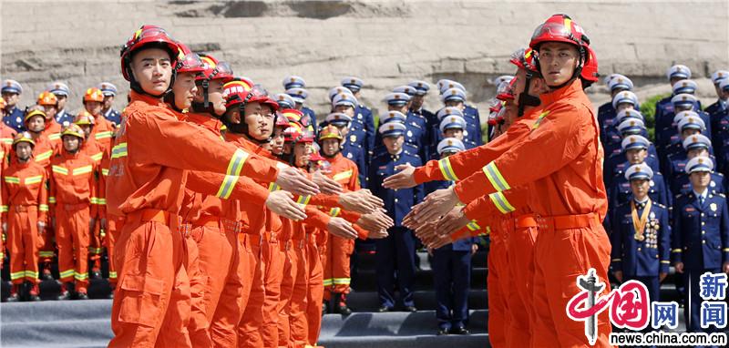 上午9点整,嘹亮的集结号在橘子洲头响起,全体消防指战员从四面八方迅速集结毛泽东青年艺术塑像广场,30名青年指战员在广场中央跳起了青春、欢快的消防仪仗舞,引来了数百名游客驻足观赏。